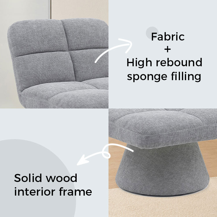 Tahanan Contemporary Nordic Unique Armless Fabric Soft Cushion Swivel Sofa Chairs para sa Living Room na may Rotating Base(GY-643)