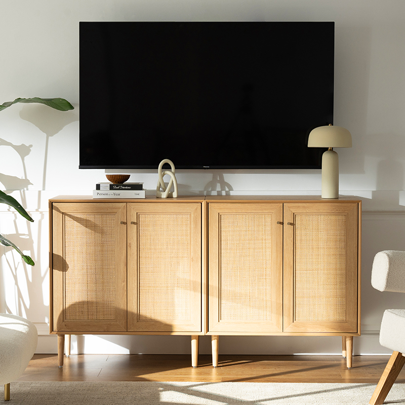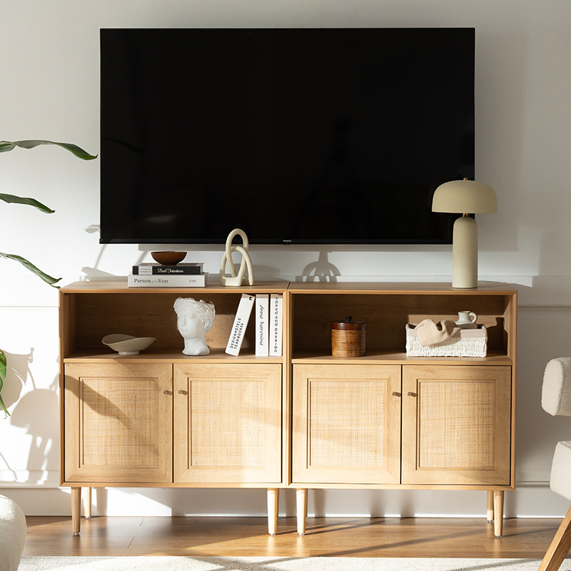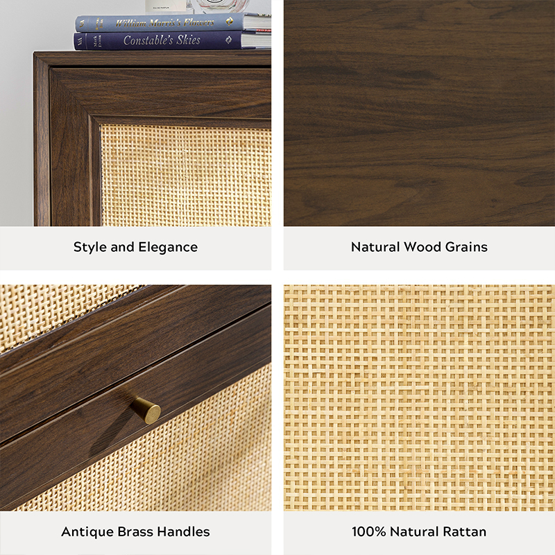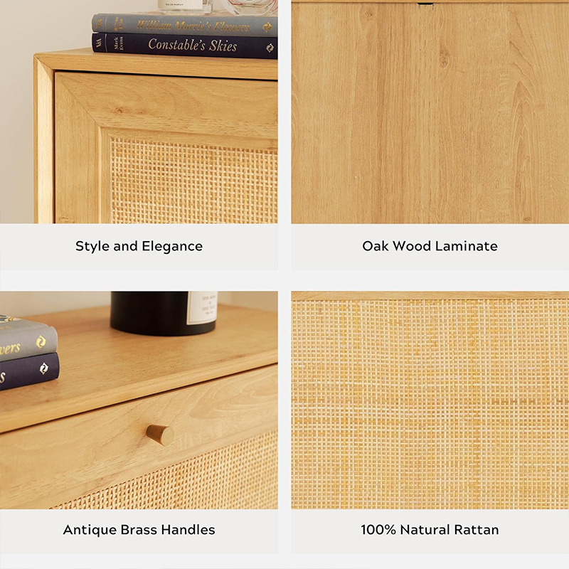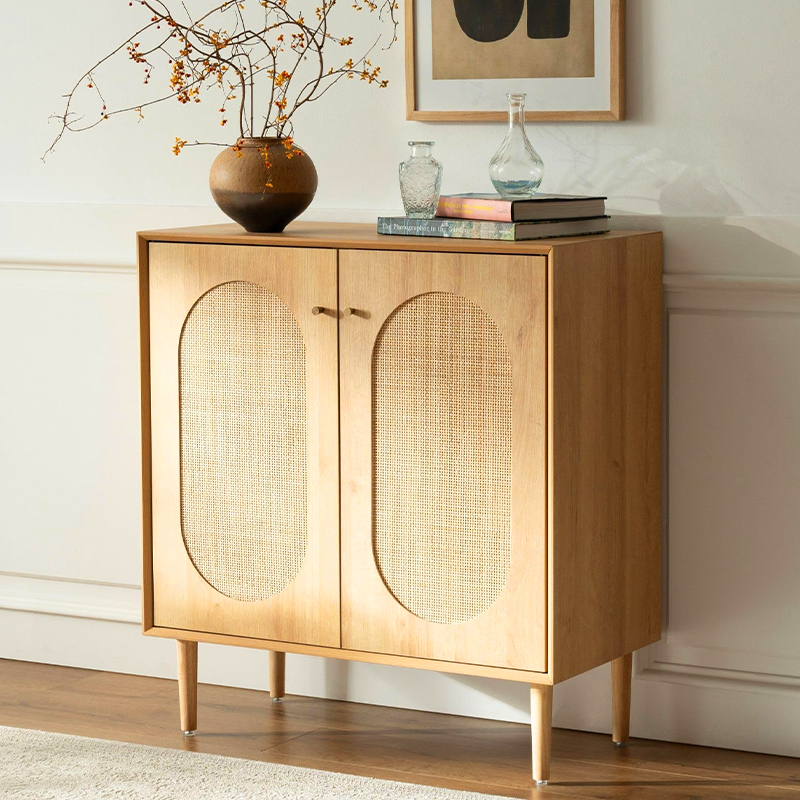| materyal | Solid wood board na may MDF finish at tunay na rattan trim |