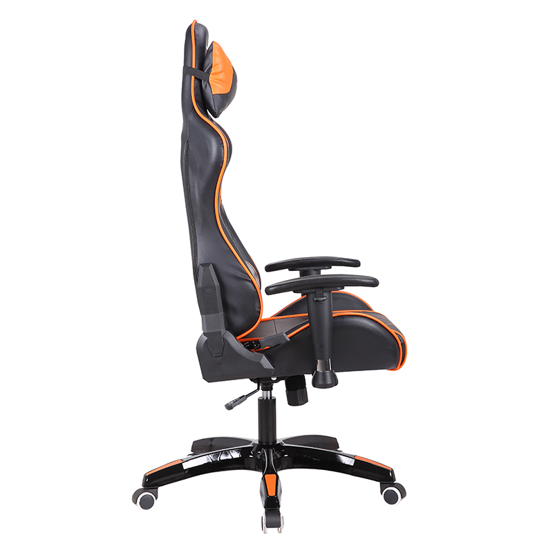 Ergonomic na disenyo: Ang mga sports gaming chair ay karaniwang ergonomic na idinisenyo upang suportahan ang tamang postura ng pag-upo. Maaaring bawasan ng disenyong ito ang presyon sa likod, leeg at balikat sa mahabang session ng paglalaro, na pumipigil sa pagkapagod at kakulangan sa ginhawa. Ang makatwirang suporta sa likod at adjustable na anggulo ng sandalan ay nakakatulong na mapanatili ang komportableng postura ng pag-upo, sa gayon ay nagpapabuti sa pagganap ng paglalaro.