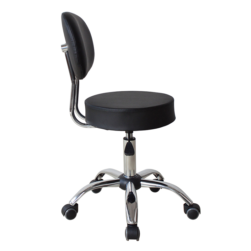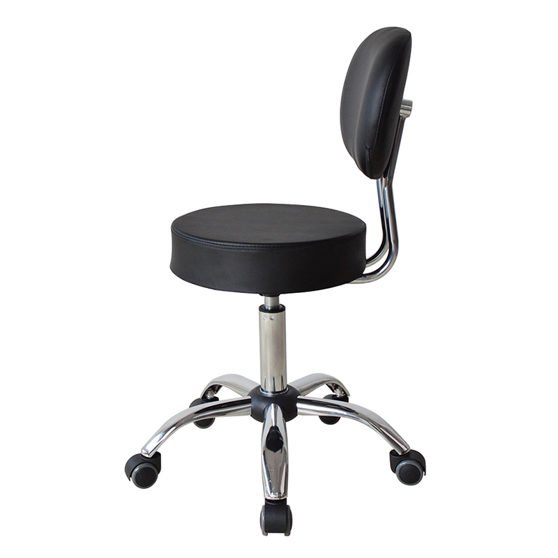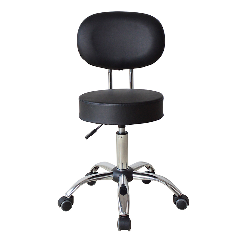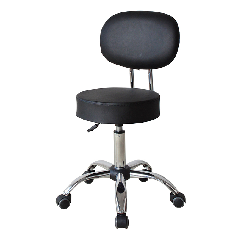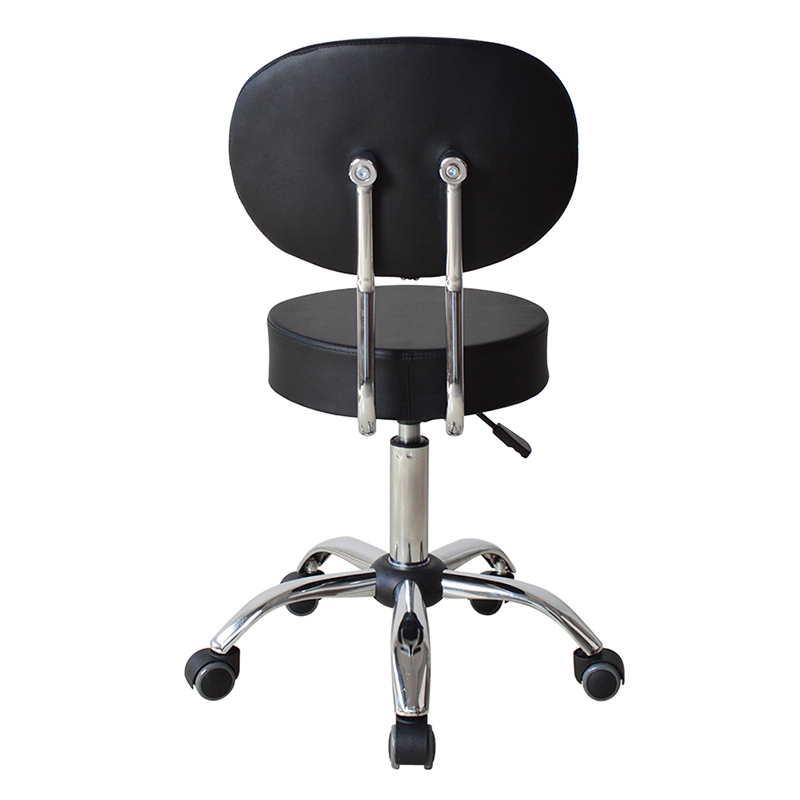 Nagtatampok ang mga upuan ng swivel mechanism na nagbibigay-daan sa user na lumiko ng 360 degrees, na ginagawang madali upang harapin ang mga kliyente o ayusin ang posisyon habang nagtatrabaho. Ang mid-back na disenyo ay nagbibigay ng suporta para sa gulugod, at ang leather na upholstery ay nag-aalok ng tibay at kadalian ng pagpapanatili.