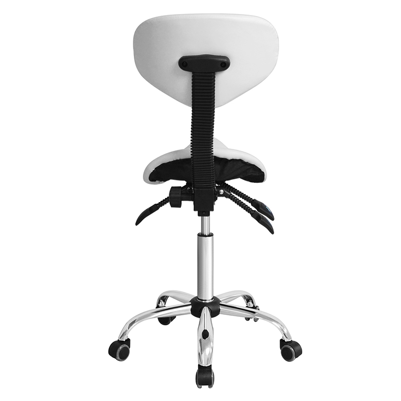 Nagtatampok ang upuan ng mid-backrest na ergonomiko na idinisenyo upang mag-alok ng pare-parehong suporta sa likod, balikat, at leeg. Ang hugis ng saddle ay nagbibigay-daan sa user na maupo sa upuan nang may postura, na pumipigil sa anumang pilay o kakulangan sa ginhawa.